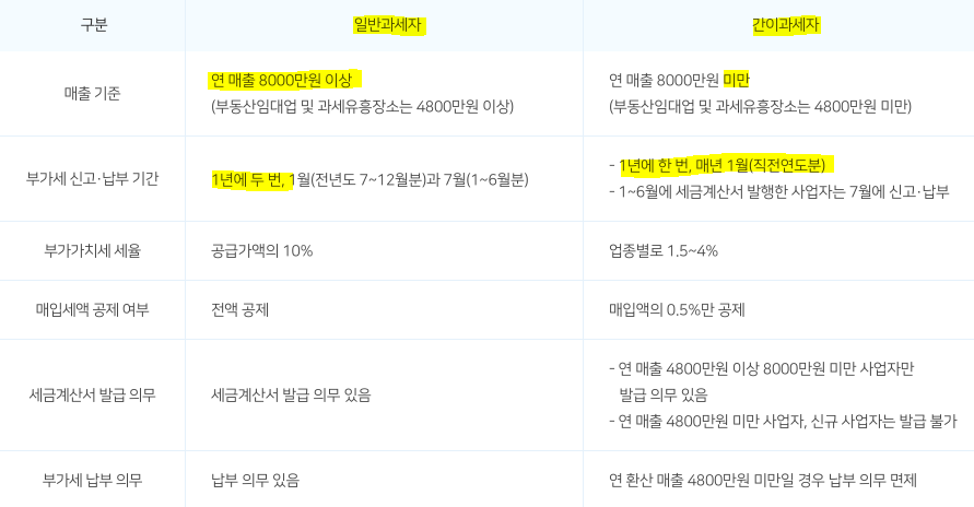 일반과세자와 간이과세자 구분 기준