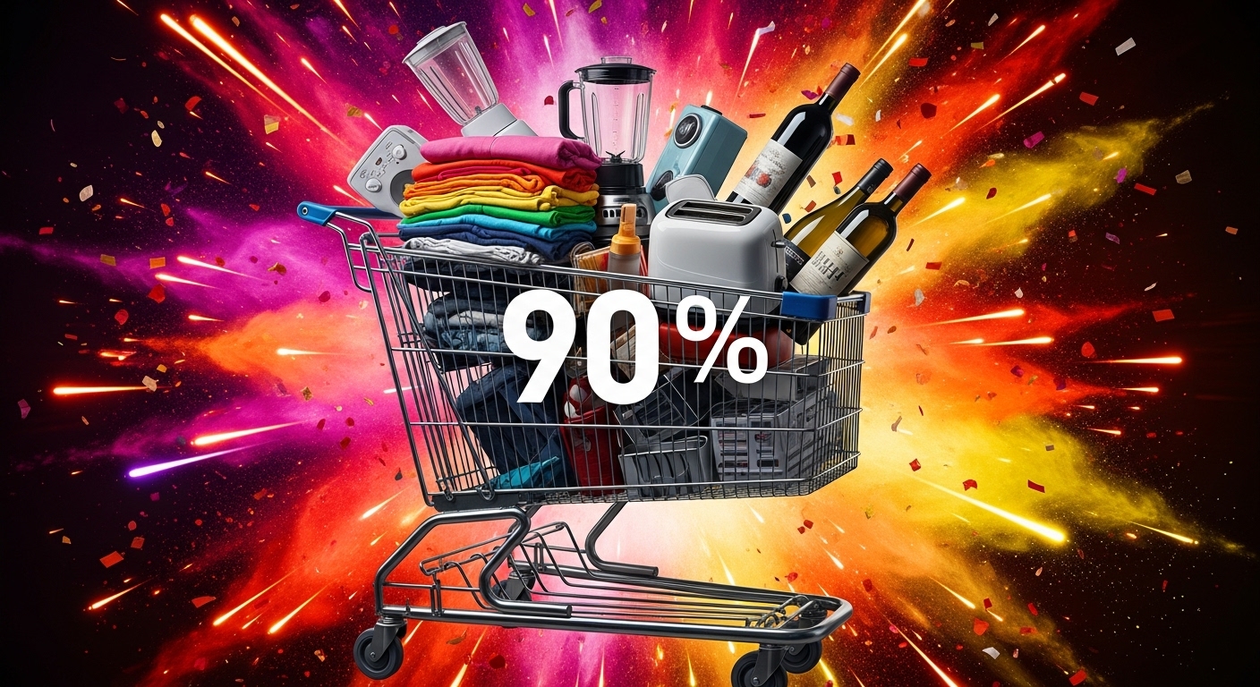 아닙니다. '최대 90%' 할인은 일부 재고 상품이나 한정 수량 기획전에 적용되는 최고 할인율일 가능성이 높습니다. 대부분의 상품은 30~80% 사이의 할인율이 적용될 것으로 예상되니, 상품별 최종 가격을 꼼꼼히 확인해야 합니다.